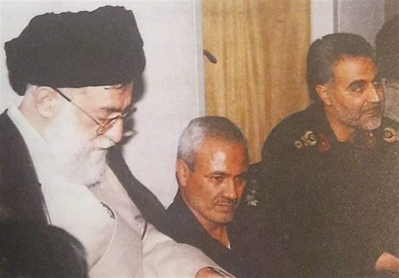 حضور رهبری به همراه حاج قاسم در منزل شهید+عکس