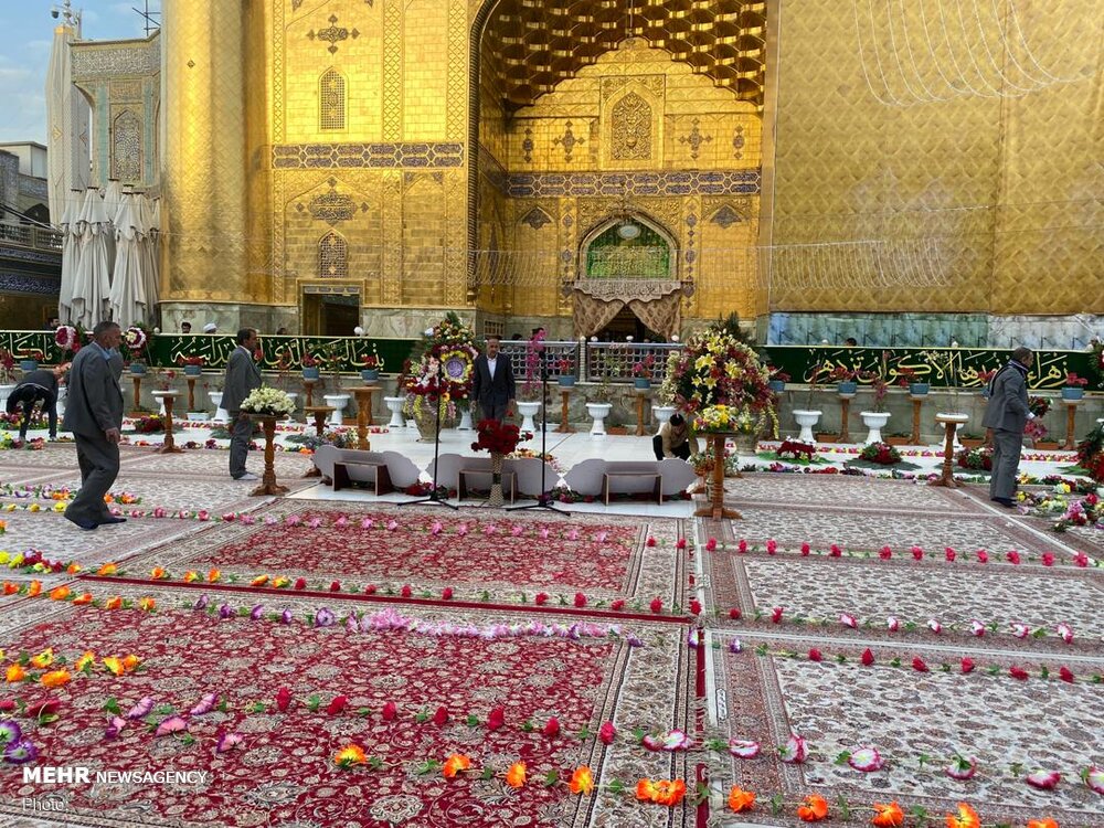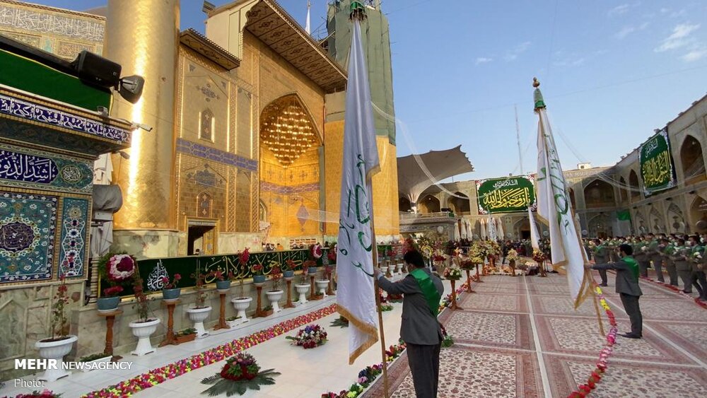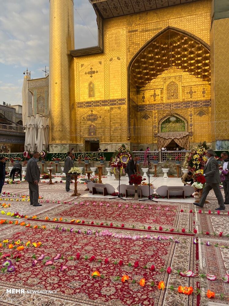 صبح امروز جمعی از خادمین بارگاه ملکوتی امیرالمومنین (ع) با مدیحه سرایی و مولودی خوانی عرض تبریک به ساحت مقدس امام علی (ع) داشتند.