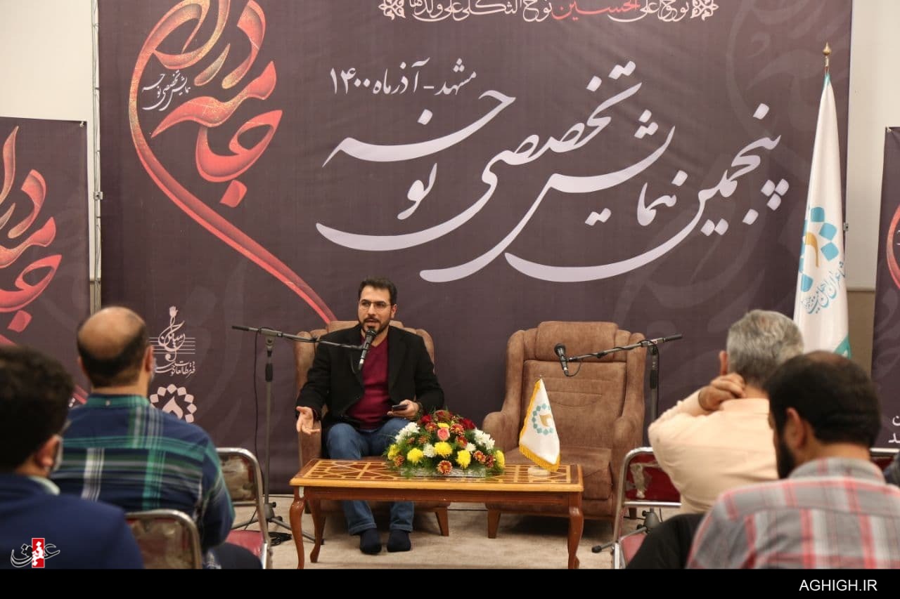 سپس نوبت به شهر میزبان یعنی مشهد رسید. در این بخش یاسر رحمانی به معرفی انجمن تکیه نوکری پرداخت و گفت : این انجمن از سال ٩۴ شروع به کار کرده است. در انجمن تکیه نوکری کلمه کلمه متن نوحه مورد نقد و بررسی قرار می گیرد. دغدغه این انجمن تغذیه محتوایی مداحان با استعدادی است که دسترسی محدودی دارند. تولیدات این انجمن در شبکه های اجتماعی منتشر می شود و قبل از آن به هیچکدام از مادحین ارائه نخواهد شد.