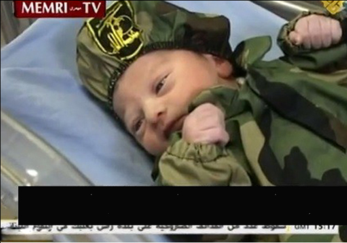 عقیق: اوایل این هفته در بیمارستان پیامبر اعظم(ص) بیروت نوزادی تازه متولد شده ملبس به لباس حزب الله لبنان شد.