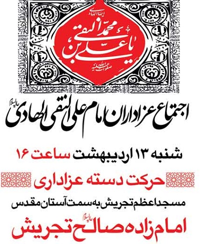 عقیق: روز شنبه از ساعت 16 و همزمان با روز شهادت امام هادی علیه السلام مراسم عزاداری برگزار می شود.