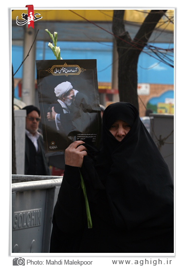 - با ورود پیکر آیت الله مجتبی تهرانی به محل اقامه نماز در مدرسه شهید مطهری ، صدای شیون و زاری حاضران بیش از قبل شد.