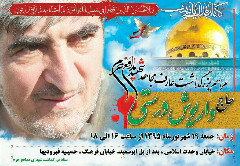فردا/ بزرگداشت شهید مدافع حرم حاج داریوش درستی