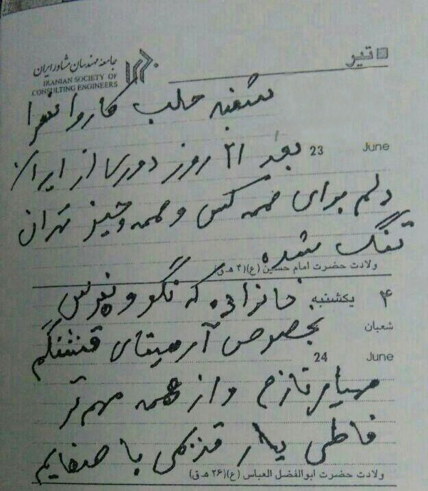 سردار شهید مدافع حرم احمد غلامی مدتی قبل از شهادتش دستنوشته ای را از خود به یادگار گذاشته است. او در این دستنوشته میگوید: «شنبه حلب کاروانسرا بعد از 21 روز دوری از ایران دلم برای همه کس و همه چیز و تهران تنگ شده. خانواده که نگو و نپرس بخصوص آرمیتای قشنگم و مهیار نازم و از همه مهمتر فاطی یار قدیمی و با صفایم».