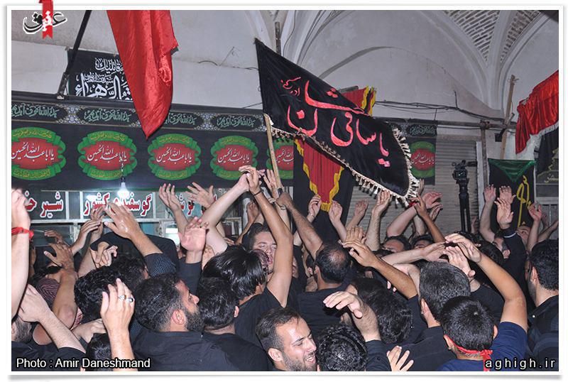 عزاداری هیئت حیدری نخل کاشان-درب باغ درشام عاشورا به همراه مراسم آئینی وقدیمی نخل گردانی در بازار قدیمی و سنتی کاشان با مداحی حاج حمید شهرآئینی برگزار شد.