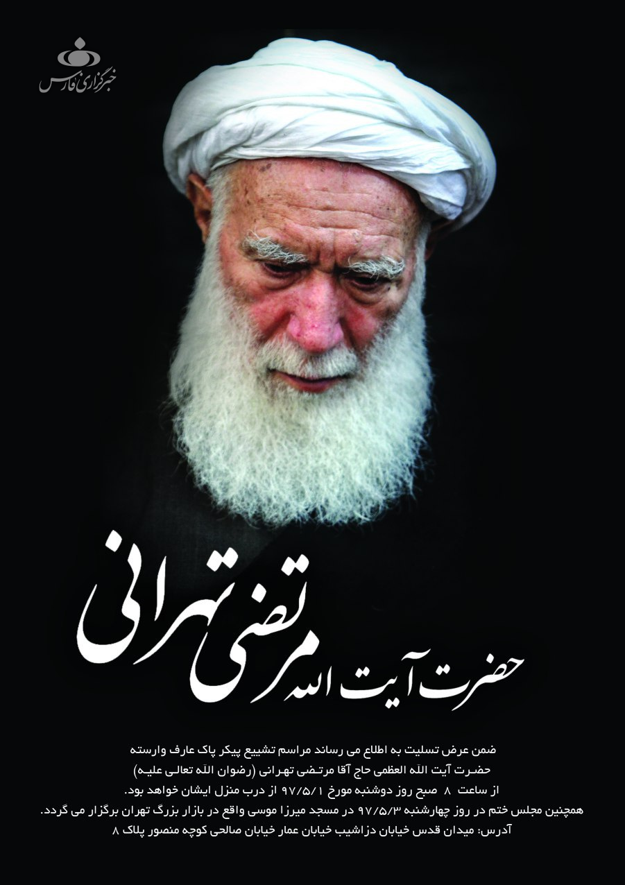 همچنین مراسم ترحیم آیتالله تهرانی روز چهارشنبه سوم مرداد ماه در مسجد میرزا موسی واقع در بازار بزرگ تهران برگزار میشود. وی سالها امام جماعت این مسجد بود و به بازاریان درس اخلاق میداد.